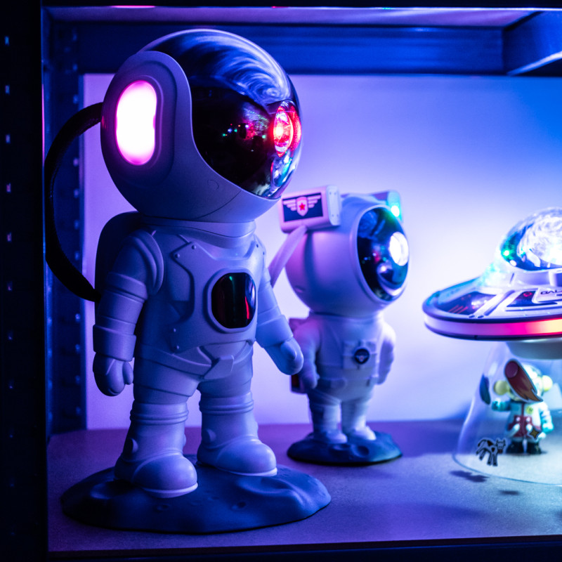 Convierte la habitación en una experiencia completa de luz y sonido con el proyector infantil Cosmolite. Diseñado para relajar y acompañar el descanso, combina efectos de estrellas y nebulosa con altavoz Bluetooth integrado.