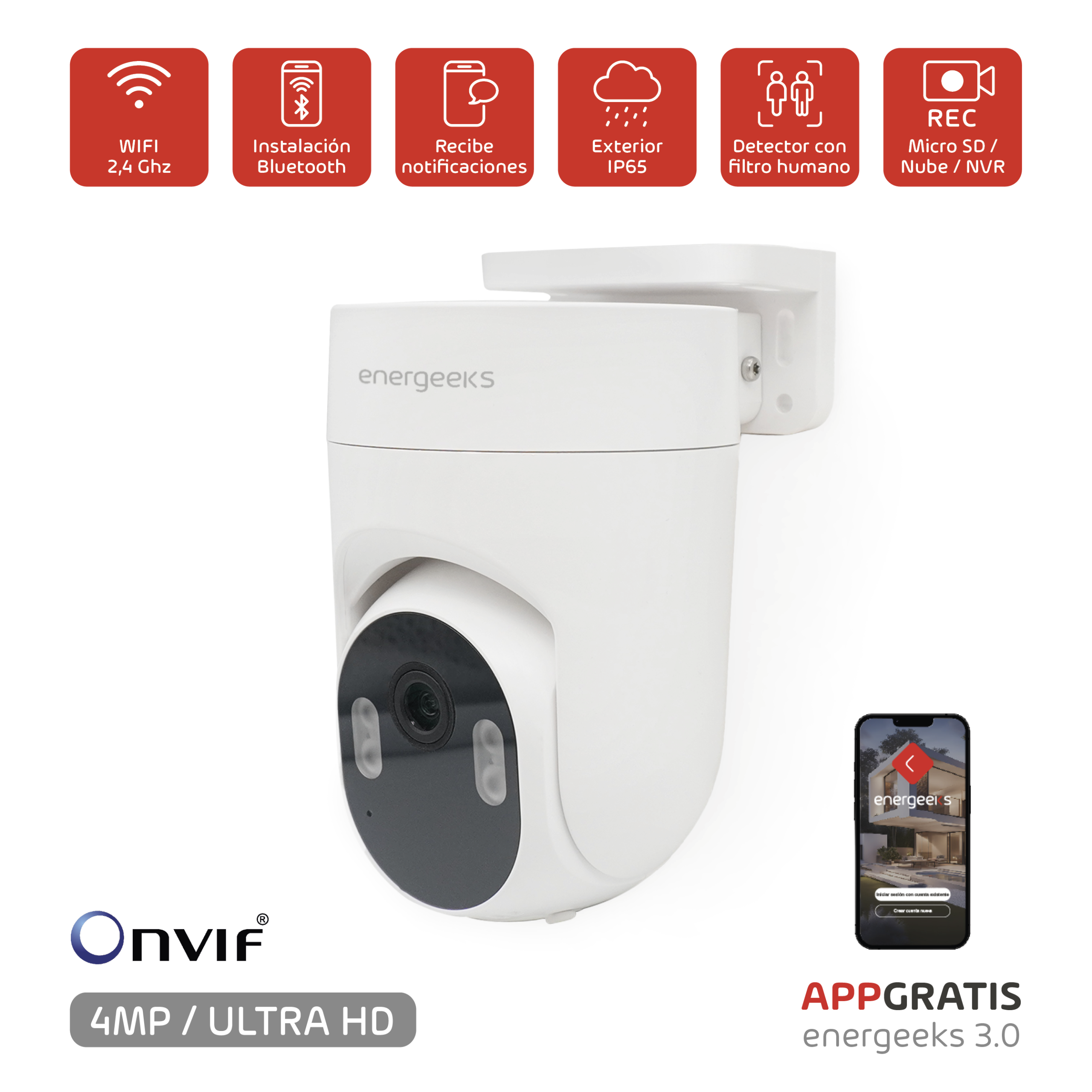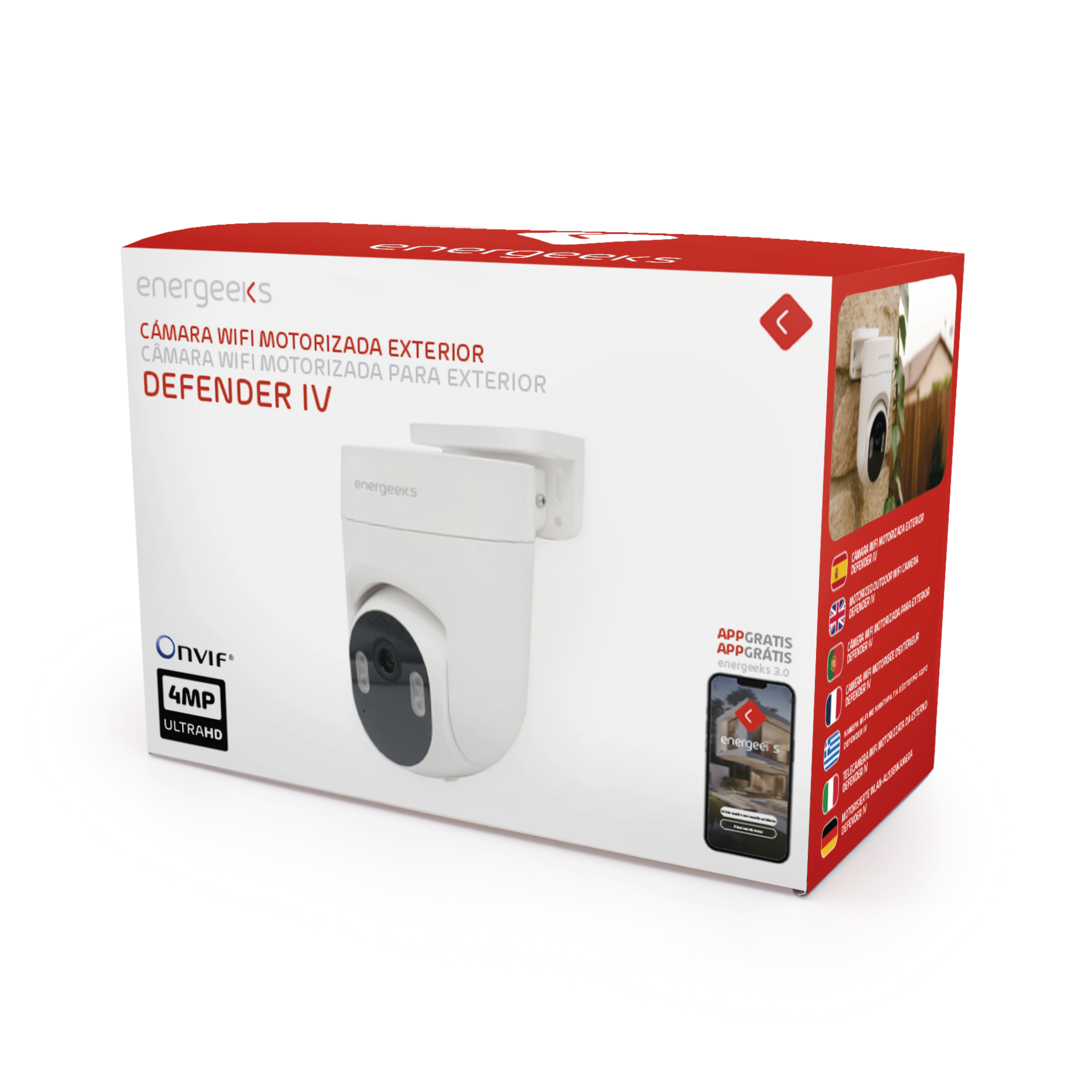 Totalmente integrada en el ecosistema Energeeks 3.0, Defender IV se combina con el resto de dispositivos de seguridad de la gama, ampliando las posibilidades de control y protección desde una única aplicación. Una cámara exterior robusta, inteligente y disuasoria, pensada para quienes buscan seguridad real y visible en el exterior de su hogar o negocio.