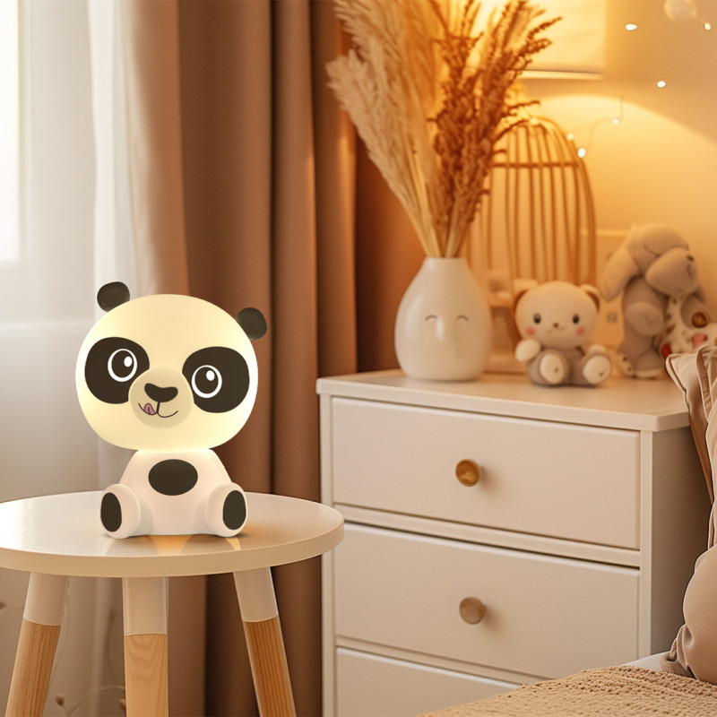 Diseño infantil tipo panda, ideal como luz de compañía o regalo.